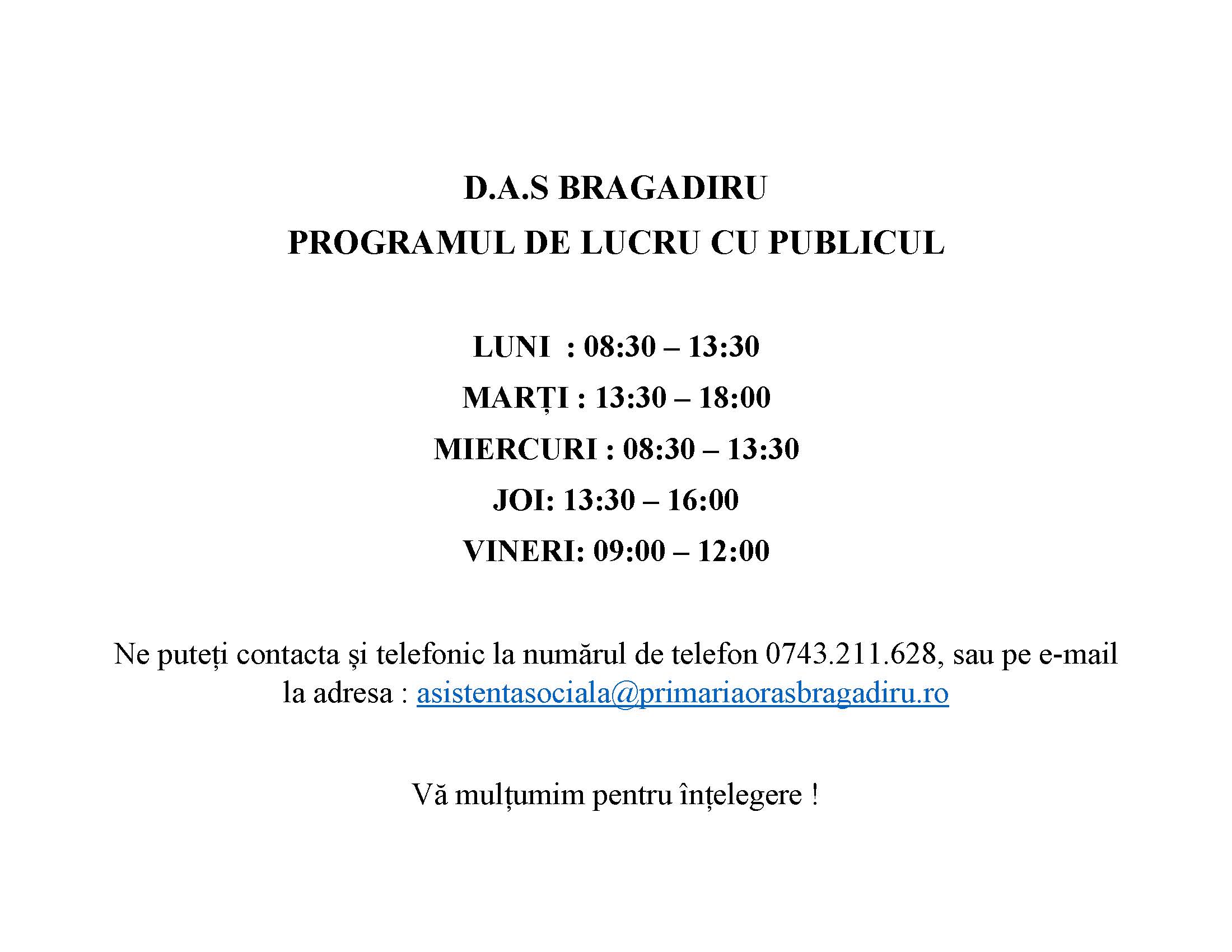 PROGRAM DE LUCRU CU PUBLICUL:
